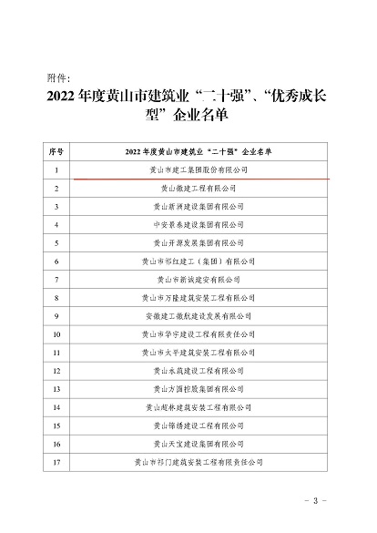 近日,黄山市住房和城乡建设局发布的《2022年度黄山市建筑业二十强企名单》中,华体会体育官方网站 - 华体会体育(中国)