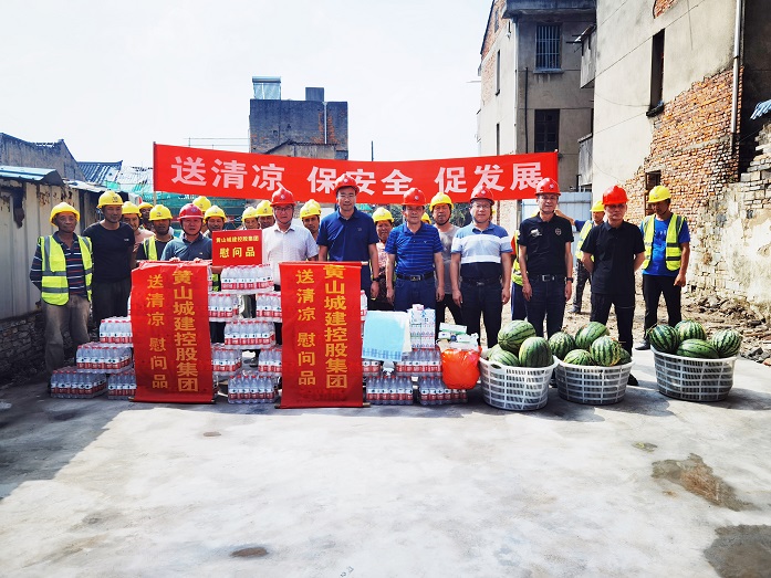 烈日炎炎,气温居高不下。为保障项目职工安全健康权益,确保项目安全生产平稳推进,8月10日上午,黄山城投城建控股有限公司总经理汪国文等一行赴宁国市河沥文化街区EPC项目工地开展走访调研暨“夏送清凉”慰问活动。华体会体育官方网站 - 华体会体育(中国) 股份有限公司董事长项端阳、总经理叶金发、副总经理吴学武陪同调研慰问。