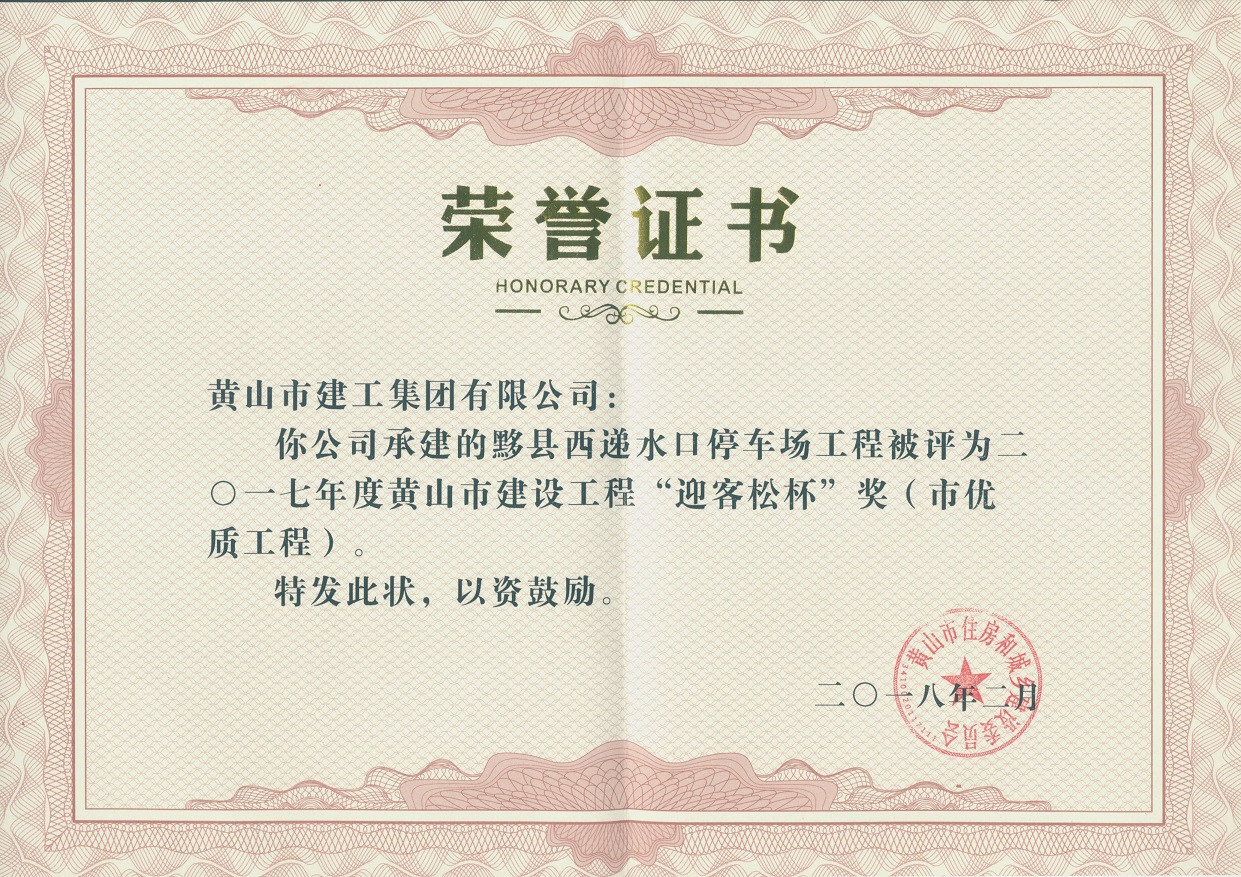 2018年度黄山市建设工程优质工程奖